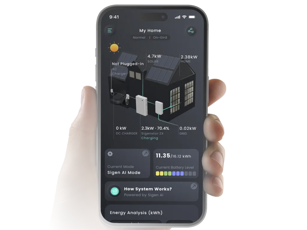 Echtzeitdaten und intelligente KI-Analysen zeigen Dir genau, wie Dein System arbeitet. Der integrierte Sigen AI Mode optimiert automatisch Deinen Energieverbrauch, kauft günstig ein, verkauft teuer und sorgt für maximale Effizienz.